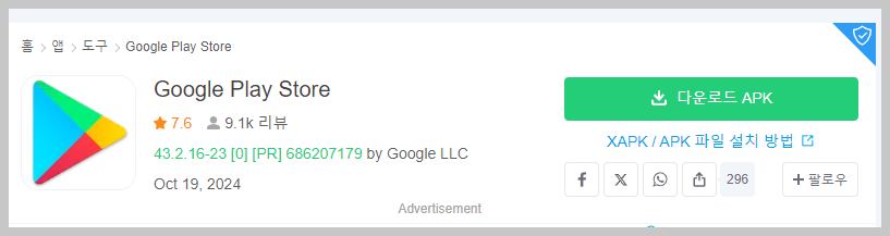 구글플레이 스토어 APK 파일 다운로드 방법